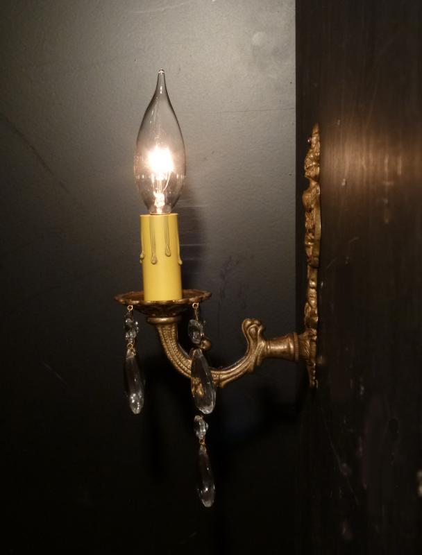 コンパクトながら装飾の細かい1灯タイプの真鍮製ブラケット。