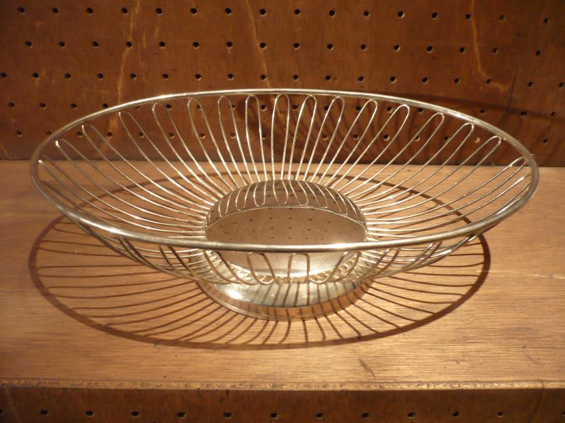 レトロなシルバー色のオーバル型ワイヤートレイ