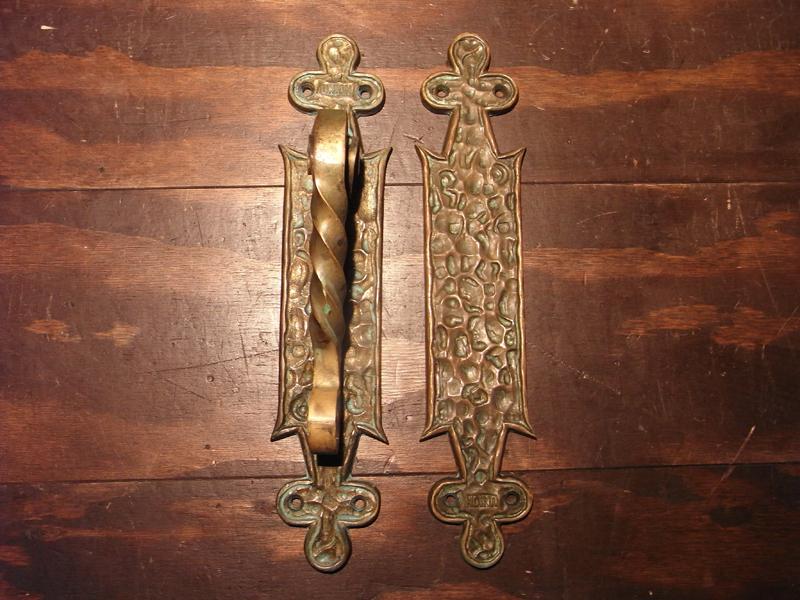 真鍮製のレトロなドアハンドルと、プレートのセット