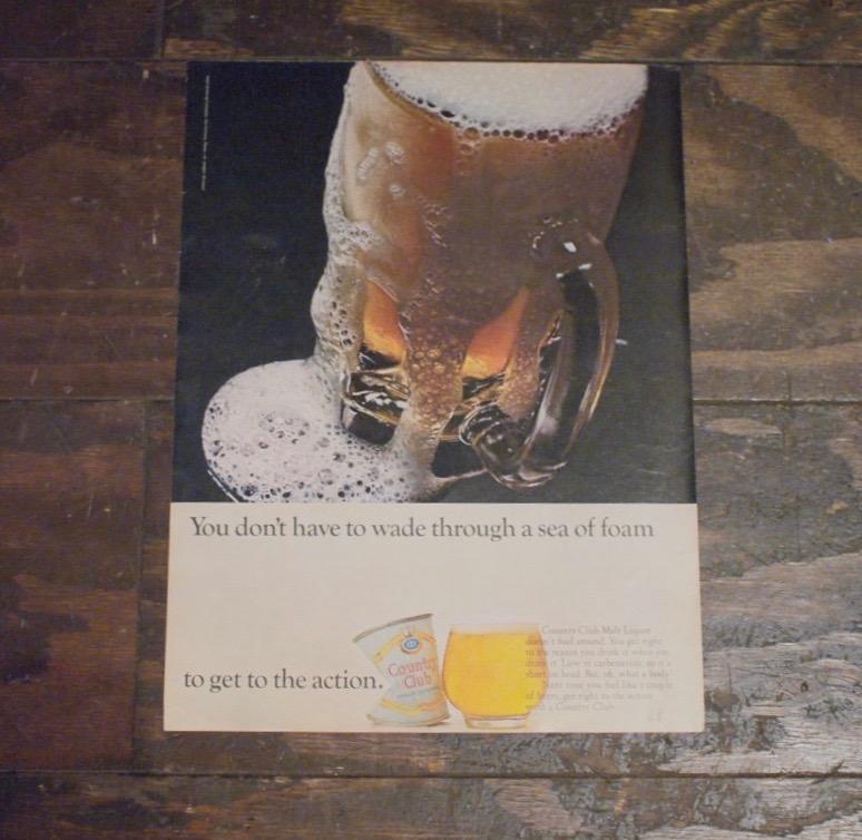裏面はCountry Club MALT LIQUOR、お酒広告のようです