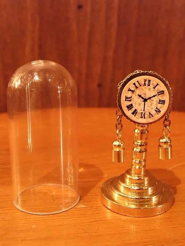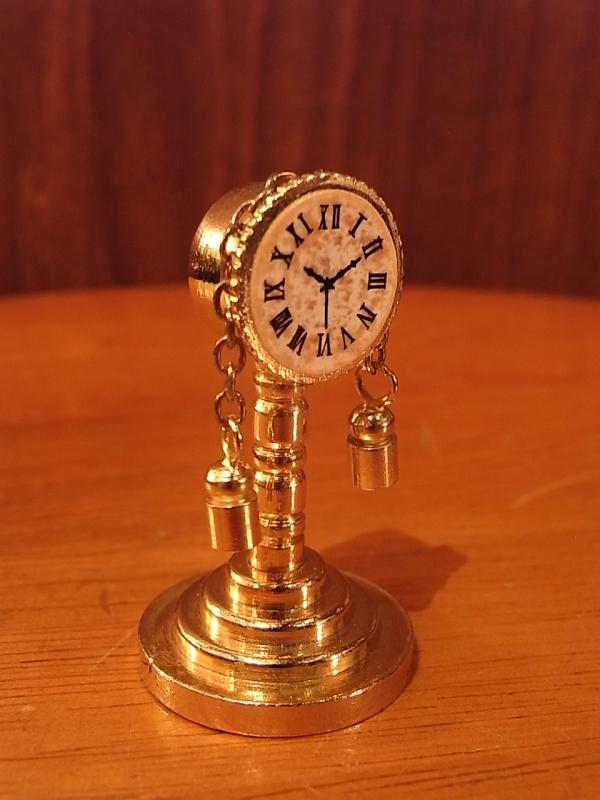 イタリア製真鍮テーブルクロック置物、ミニチュア置き時計、ドールハウス小物、テラリウムインテリア