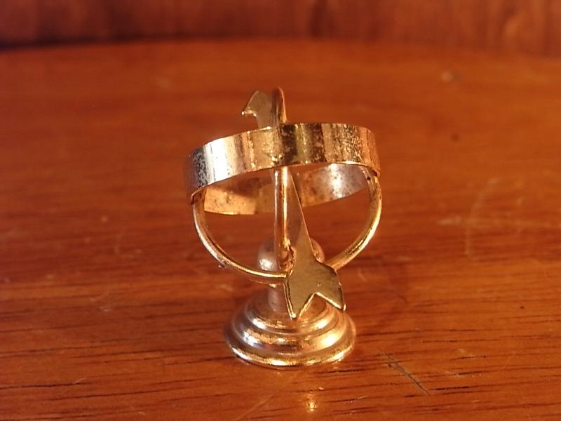 イタリア製真鍮天球儀置物、ミニチュア矢印惑星儀、ドールハウス小物、テラリウム日時計オブジェ