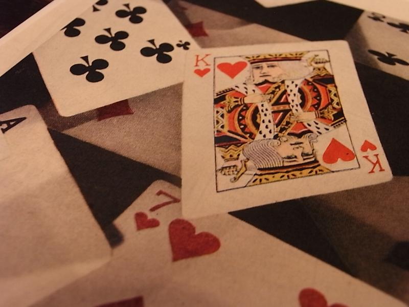 青いケースとトランプカードがランダムに配列されたデザインとなっています。