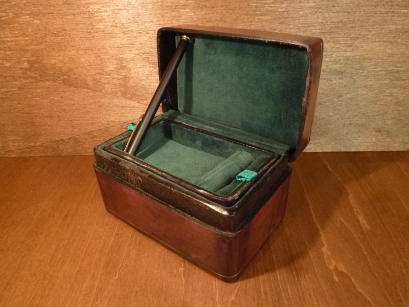こげ茶色の革のジュエリーケース