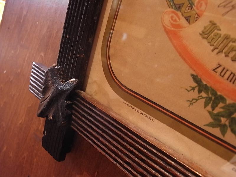 四隅に葉っぱのついた、焦げ茶色の井形のフレームに入った、
