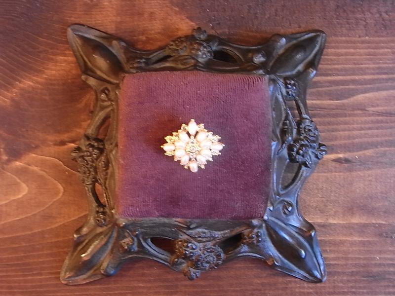 フランス製ベルベット針刺し 真鍮ベースアクセサリー座布団
