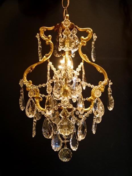 当時からついていた、ヒラヒラと飾りのついた大振りクリスタルは、かなりワイヤーが弱っていた為、外して洗浄し、